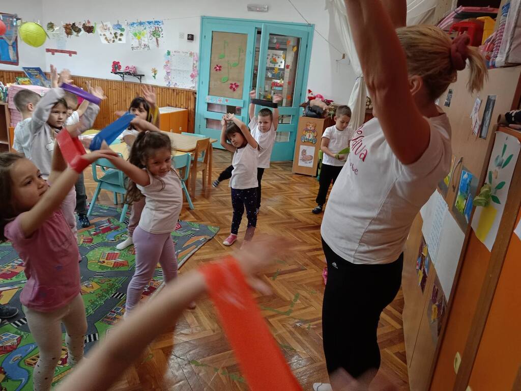 Naučili smo šta je to fitnes, kako se trenira, gde se trenira, šta je potrebno od opreme, koliko dugo traje jedan trening, ko može sve da trenira šta postižemo treninzima, koje mišiće pokrećemo i jačamo... Donela nam je pilates loptu kao i gumene trake na kojima smo radili vežbe. Takođe smo radili i vežbe uz muziku. Deci je bilo lepo i interesantno i svi zajedno smo uživali. 😄