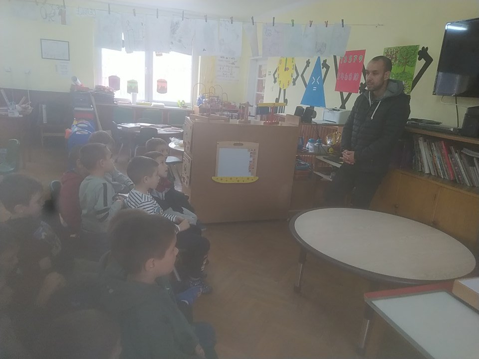 Povod za ovakvom posetom je bilo mini predavanje,uz interesantne slajdove o zaštićenim vrstama i pticama selicama koje privremeno ili stalno naseljavaju naš rezervat Slanu kopov. U okviru ovog predavanja deca su na jedan viši i stručniji nivo dobila nova saznanja vezana za ptice našeg podneblja. Saznali smo da postoji oko 200 različitih vrsta,koje su većinom zaštićene. Igrali smo kviz znanja, pogodi koja je to ptica na osnovu slike i kratkog opisa. Deca su dobila saznanje kako se ptice prstenuju, kako se vrši njihova zaštita od izumiranja, šta je uloga lovaca i lovočuvara. Upoznali smo se sa zanimanjem orintologa. Naučili smo kako se pravilno posmatraju ptice u njihovom okruženju i koja nam je oprema potrebna za to. Na obostrano zadovoljstvo na kraju predavanja deca su postavljala pitanja koja su ih zanimala u vezi odredjenih vrsta ptica.
