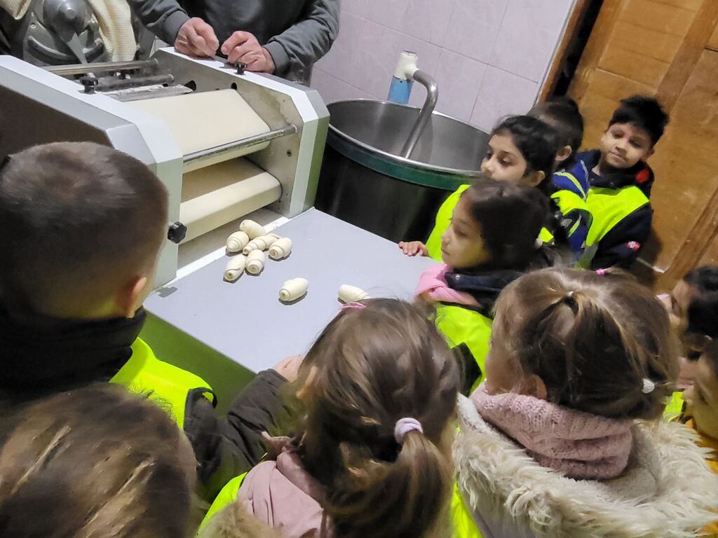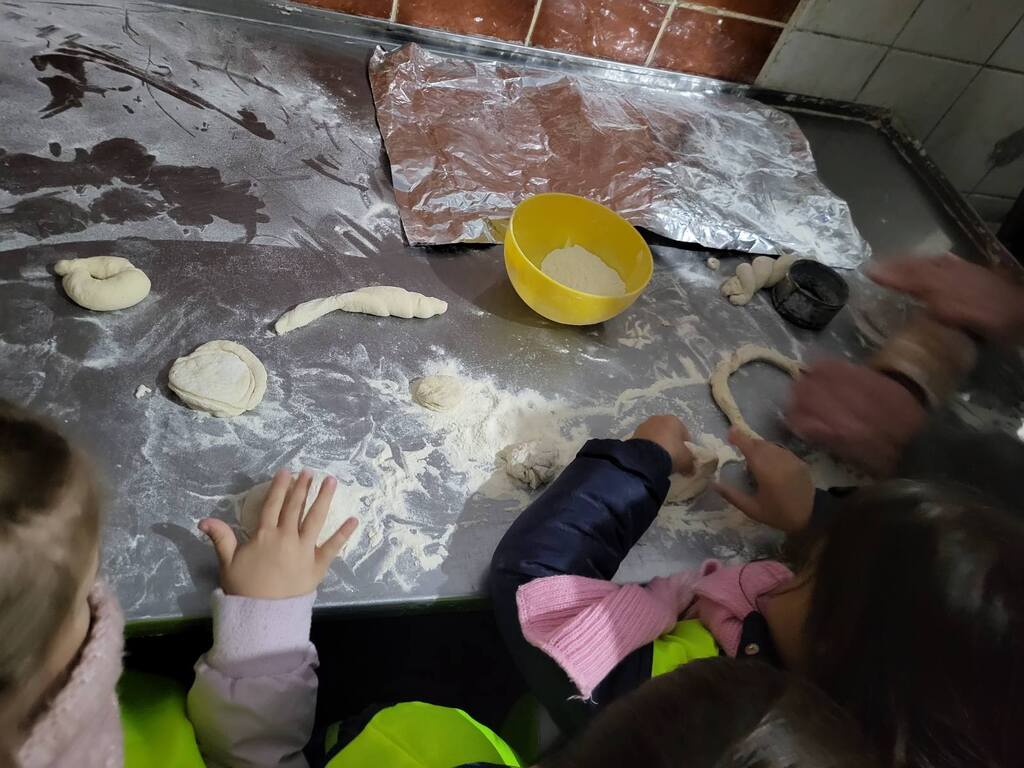 Mogli smo da vidimo proces nastanka kiflica - od toga gde i kako se mesi testo, razvlači, uvija, pa sve do poslednje faze, gde se peče. Takođe, pored svake mašine koja ima svoju namenu, videli smo i kameni mlin za mlevenje žitarica. Deci je posebnu radost izazvala mogućnost mešenja testa i pravljenja pekarskih proizvoda po njihovom izboru.