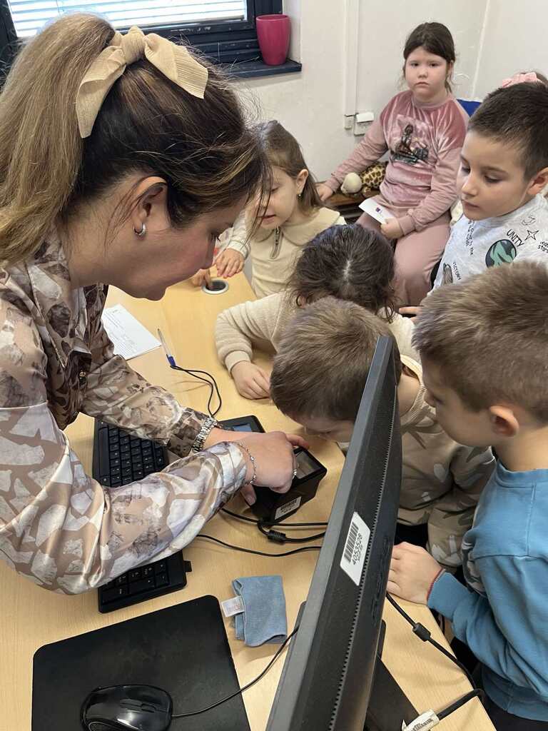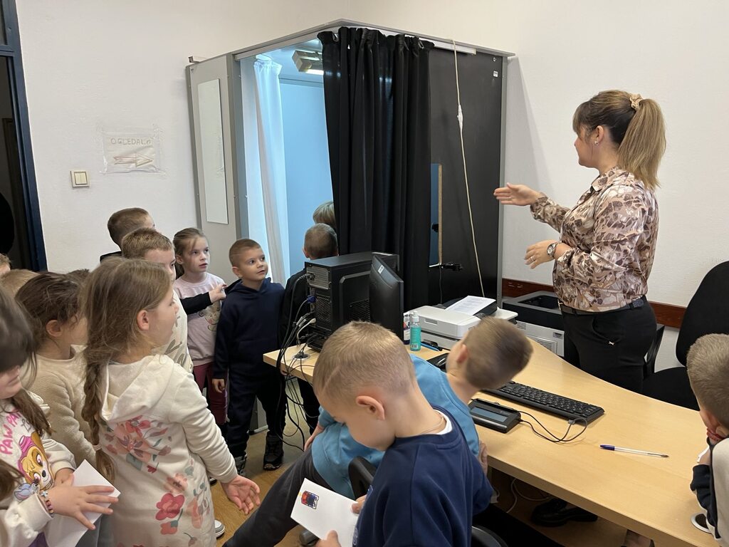 Posebno je zanimljiv bio obilazak prostorije sa kabinama za fotografisanje. Jedna službenica nam je pokazala celokupnu proceduru uzimanja otiska prsta i fotografisanja za dokumenta, a deca su imala priliku i sama da ostave otisak.