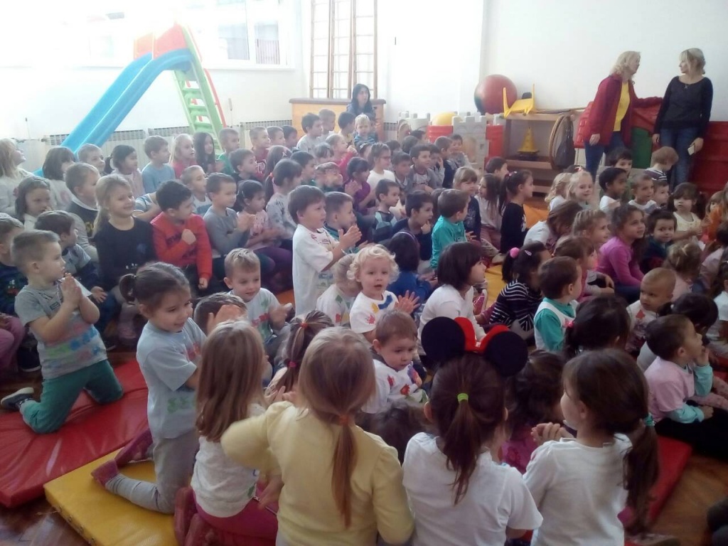 IMG 2e01b97e7c37eb4735cc3bc8be35edae VMališani iz objekta "Leptirić" su na čelu sa svojim vaspitačima obeležili početkom nedelje Svetski dan deteta svi zajedno, darujući jedni drugima poklone i mali program.