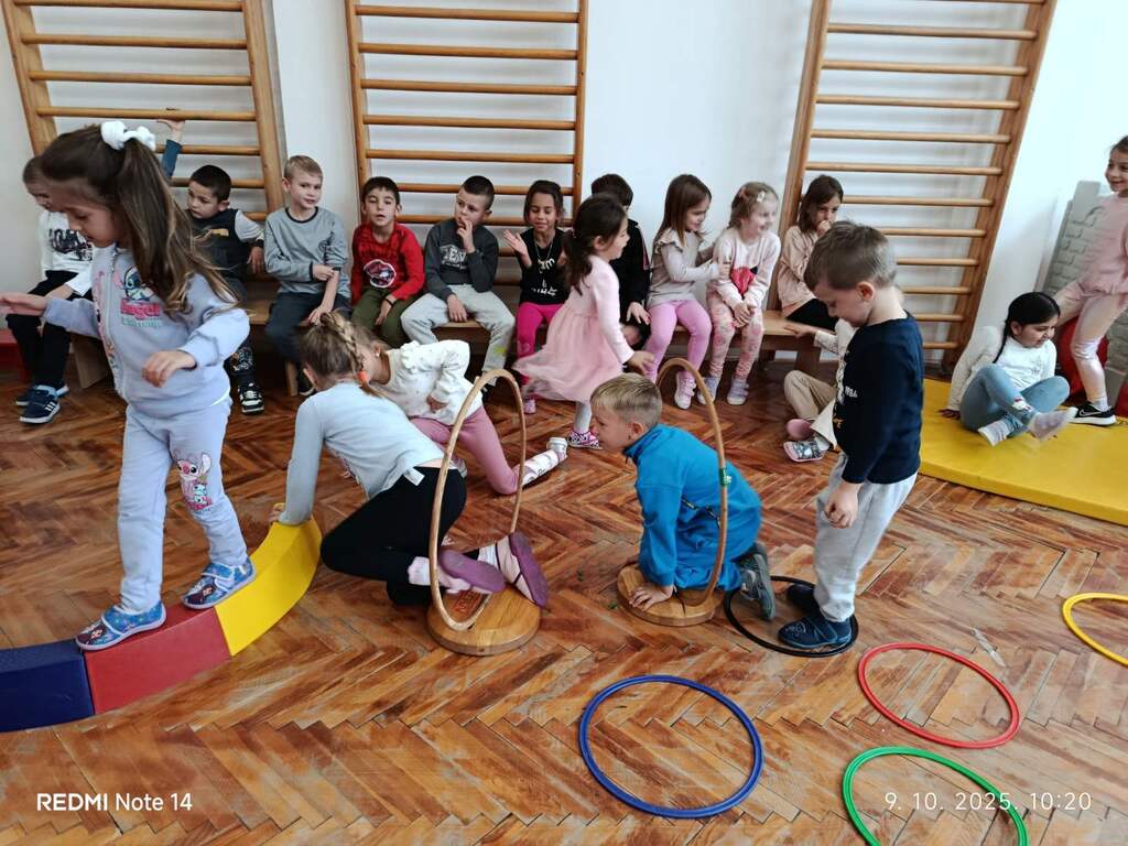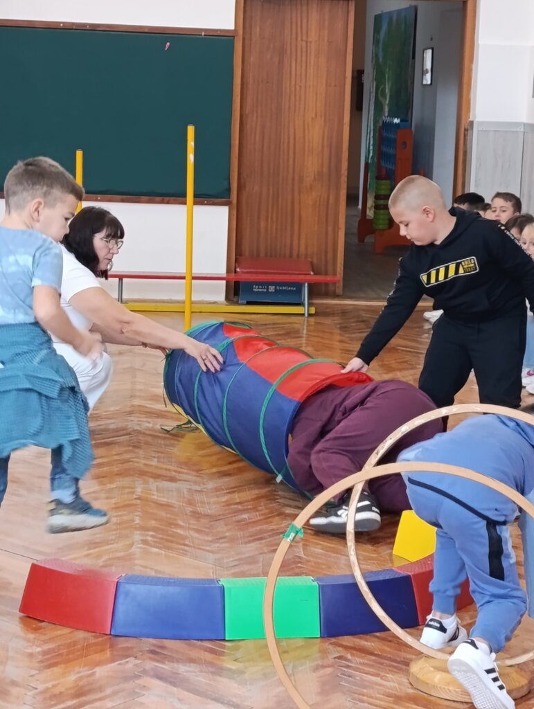 U duhu zajedništva i negovanja odnosa sa lokalnom zajednicom, naši mališani su u goste pozvali drugare iz prvih razreda osnovne škole i njihovim učiteljicama Popov Aleksandrom, Mirkov Olgom i Polak Agotom. Priredili smo im iznenađenje u vidu sportskog poligona, kako bi zajedno uz zabavu, igru ipak i malo provežbali motoriku i "odmerili snage" :) Posle dobre fizičke aktivnosti, mališani su zajedno proslavili uz muziku, pesmu, recitacije i razmenu crteža, slikovnica uz slakiše, slaniše i sokić. Hvala drugarima što su došli kod nas na druženje i uveličali ovu zajedničku Dečiju nedelju.