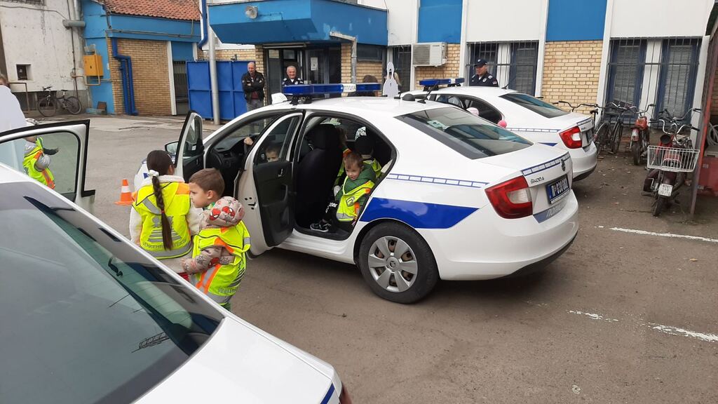 Naši drugari iz vaspitnih grupa uzrasta 4 i 5 godina iz objekta "Leptirić" u Novom Bečeju, tokom jučerašnjeg dana posetila su policijsku upravu Novog Bečeja. Tokom posete uz svečani doček celog tima u njihovom dvorištu, naši mališani imali su prilike da vide sva policijska vozila, da sednu u ista, da puste sirenu, da govore na razglas i da se oprobaju u policijskom poslu. Pored toga policijski službenici prikazali su deci opremu koju koriste, omogućili čak i da probaju šlemove i fotografišu se. Nakon što toga su ušli u policijsku stanicu gde su se upoznali sa ostalim službenicima koji su deci predstavili svoje poslove, čemu to još služi policijska stanica, ali naravno najzanimljiviji deo je taj da naravno lopovi idu u policiju i zatvor :) Deca su se počastila sa našim herojima, uz slatkiše i slaniše i sokiće koje su im pripremili. Hvala celom timu policijske uprave Novog Bečeja na ova jednom kreativnom, edukativnom i kvalitetnom danu, gde su naša deca imala prilike da upoznaju našu lokalnu zajednicu u drugačijem svetlu i od najranijeg uzrasta nauče da je policija uvek tu za nas i uz nas.