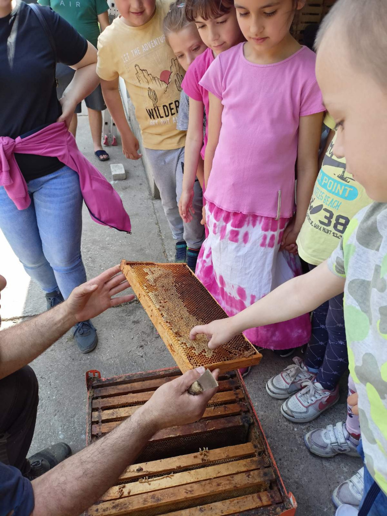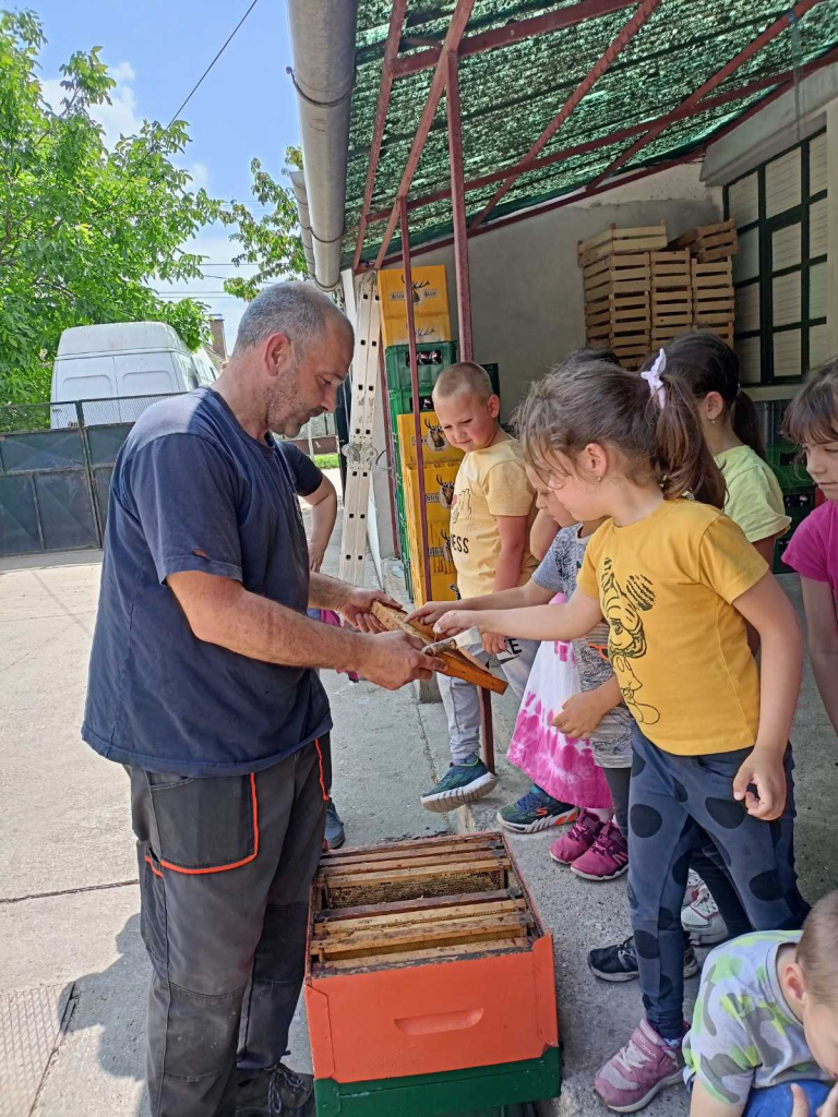 Tokom istraživanja i bavljenja insektima, njihovim značajem za naše okruženje, život i zdravlje, mališani su sa svojom vaspitačicom došli do insekta zvanog pčela. Pitajući se da li bi neke nove informacije o pčelama mogli pronaći, a da nisu iz enciklopedija i sa interneta, vaspitačica je pronašla porodicu Batanjski iz Novog Miloševa koji imaju registrovano pčelarsko gazdinstvo.  Deca su imala prilike da postavljaju pitanja o svemu što ih je zanimalo vezano za pčele. Zašto nas pčela ubode? Zašto pčela ugine kada nas ubode? Kako nastaje med? I mnoga druga pitanja. Naši domaćini su nam priuštili jednu veoma interesantnu i poučnu posetu, punu izazova, pitanja i novih saznanja. Videli smo mnogo toga, čuli još više, ali i probali nove stvari koje su nam smanjile "strah" od pčela i koje su nas naučile da su nam pčele veoma dobri i veliki prijatelji. Zahvaljujemo se našim domaćinima porodici Batanjski na izuzetnoj saradnji, predivnoj poseti i svim poučnim informacijama koje su preneli našim mališanima i možda nekim od njih budućim pčelarima.
