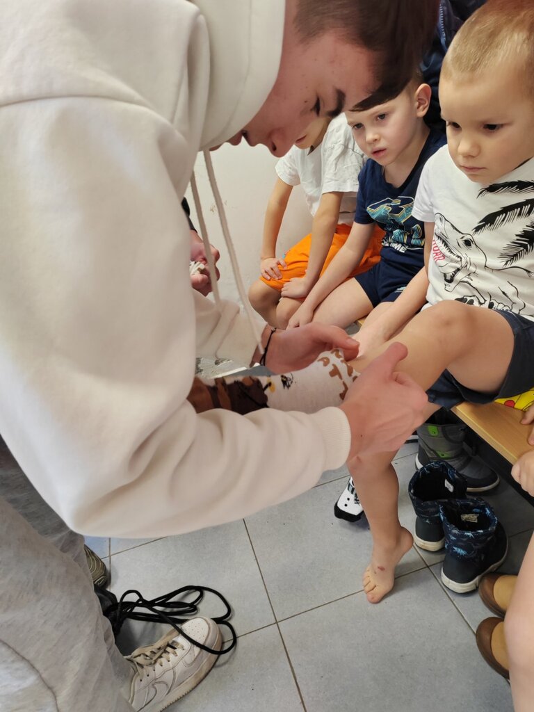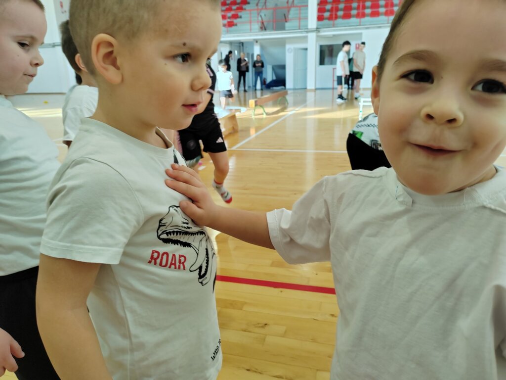Čim smo zakoračili u pravu, veliku salu za fizičko, osetili smo neverovatnu slobodu pokreta - prostranstvo koje nas je prosto pozvalo na igru i istraživanje. Naši veliki drugari su kroz ovaj susret razvijali ono najvažnije- empatiju, strpljenje i odgovornost. Sa puno nežnosti su čučnuli da nam pomognu oko obuće i bili naša "sigurna ruka" koja nas je bodrila i čuvala dok smo savladavali prepreke. Mi smo, s druge strane, bili pravi naučnici u pokretu. Dok smo trčali i vežbali, naša srca su počela da "luduju" od ritma i uzbuđenja. Fascinirana tom snagom, deca su radoznalo opipavala srca svojih drugara, osluškujući taj ubrzani ritam koji se osetio u celoj sali. Bio je to trenutak čistog čuđenja i saznanja kako naše telo reaguje na radost i napor. Upravo zbog ovakvih trenutaka, želimo da izrazimo neizmernu zahvalnost osnovnoj školi,, Dositej Obradović", što su nam otvorili vrata i prepoznali vrednost ovakvog načina učenja i omogućili deci da istražuju svet u sigurnom i podsticajnom okruženju.