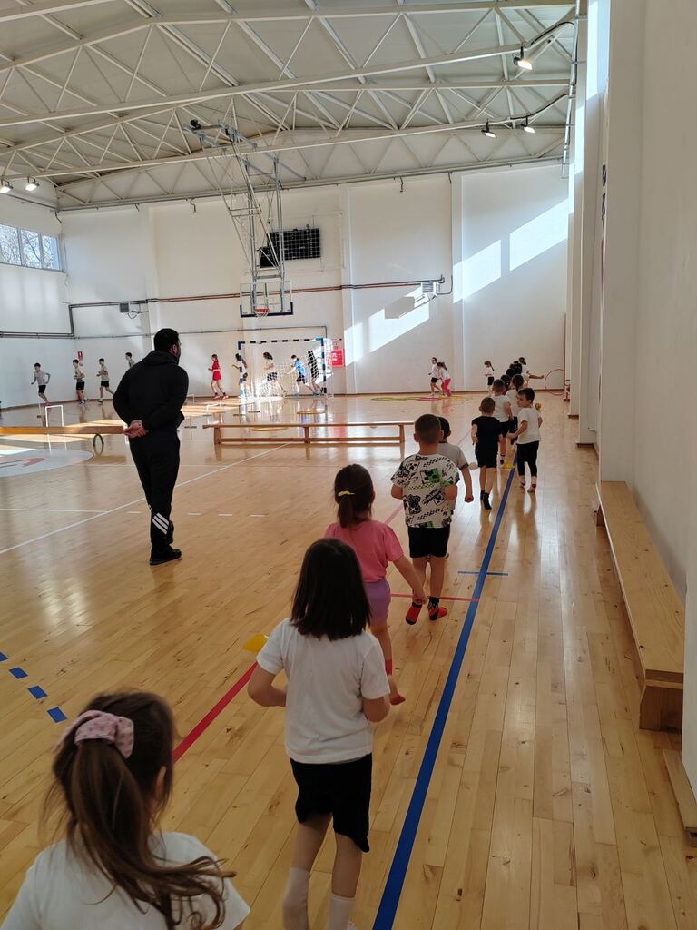 Čim smo zakoračili u pravu, veliku salu za fizičko, osetili smo neverovatnu slobodu pokreta - prostranstvo koje nas je prosto pozvalo na igru i istraživanje. Naši veliki drugari su kroz ovaj susret razvijali ono najvažnije- empatiju, strpljenje i odgovornost. Sa puno nežnosti su čučnuli da nam pomognu oko obuće i bili naša "sigurna ruka" koja nas je bodrila i čuvala dok smo savladavali prepreke. Mi smo, s druge strane, bili pravi naučnici u pokretu. Dok smo trčali i vežbali, naša srca su počela da "luduju" od ritma i uzbuđenja. Fascinirana tom snagom, deca su radoznalo opipavala srca svojih drugara, osluškujući taj ubrzani ritam koji se osetio u celoj sali. Bio je to trenutak čistog čuđenja i saznanja kako naše telo reaguje na radost i napor. Upravo zbog ovakvih trenutaka, želimo da izrazimo neizmernu zahvalnost osnovnoj školi,, Dositej Obradović", što su nam otvorili vrata i prepoznali vrednost ovakvog načina učenja i omogućili deci da istražuju svet u sigurnom i podsticajnom okruženju.